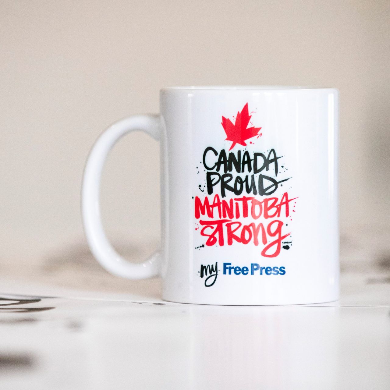 Classic mug with Canada Proud Manitoba Strong artwork. Fill with some strong coffee and help strengthen Canadian journalism.